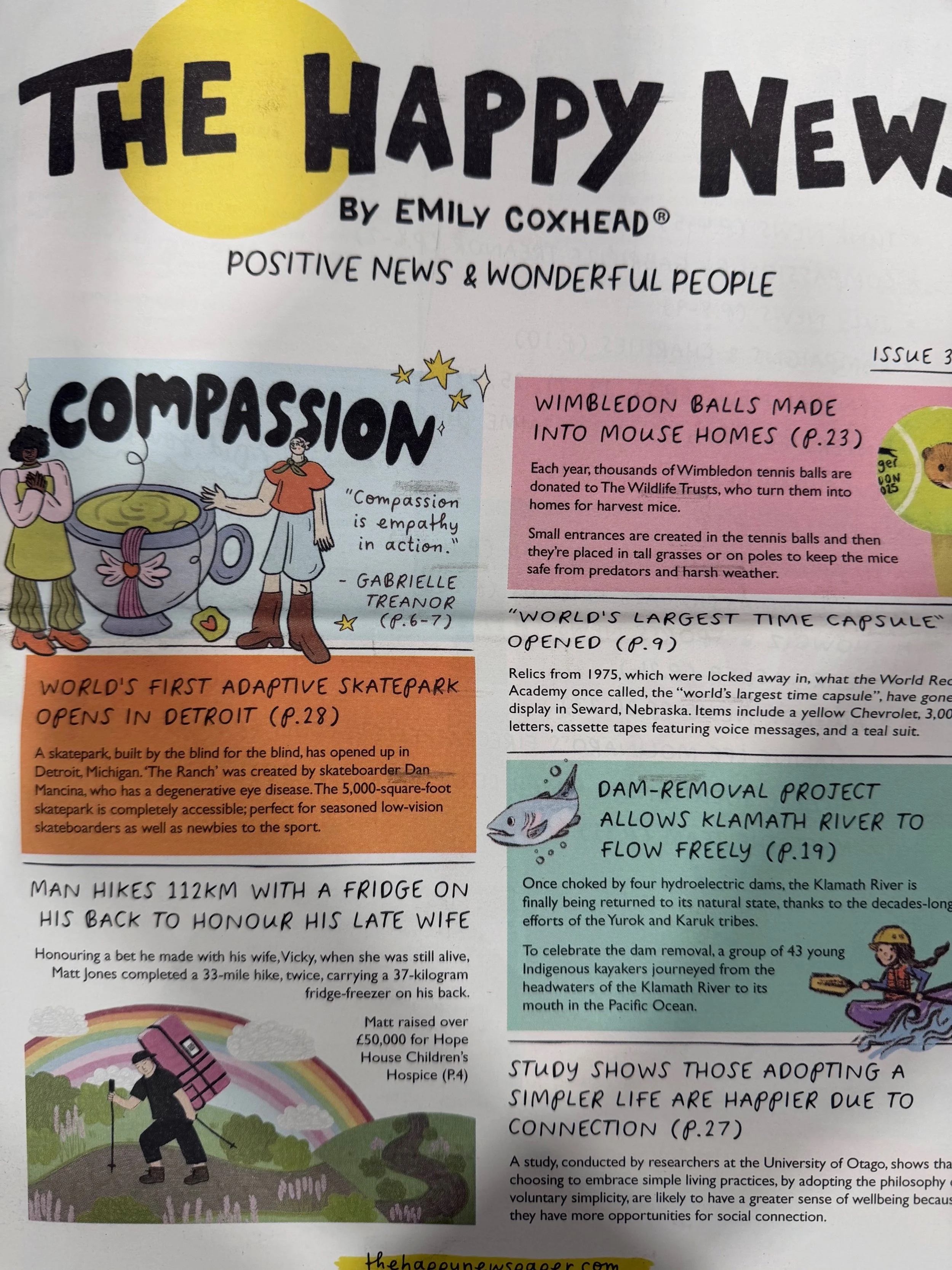 The Happy Newspaper is just that, a paper filled with all the joy happening in the world. In a world of uncertainty, this is just what is needed. Get your hands on it here.