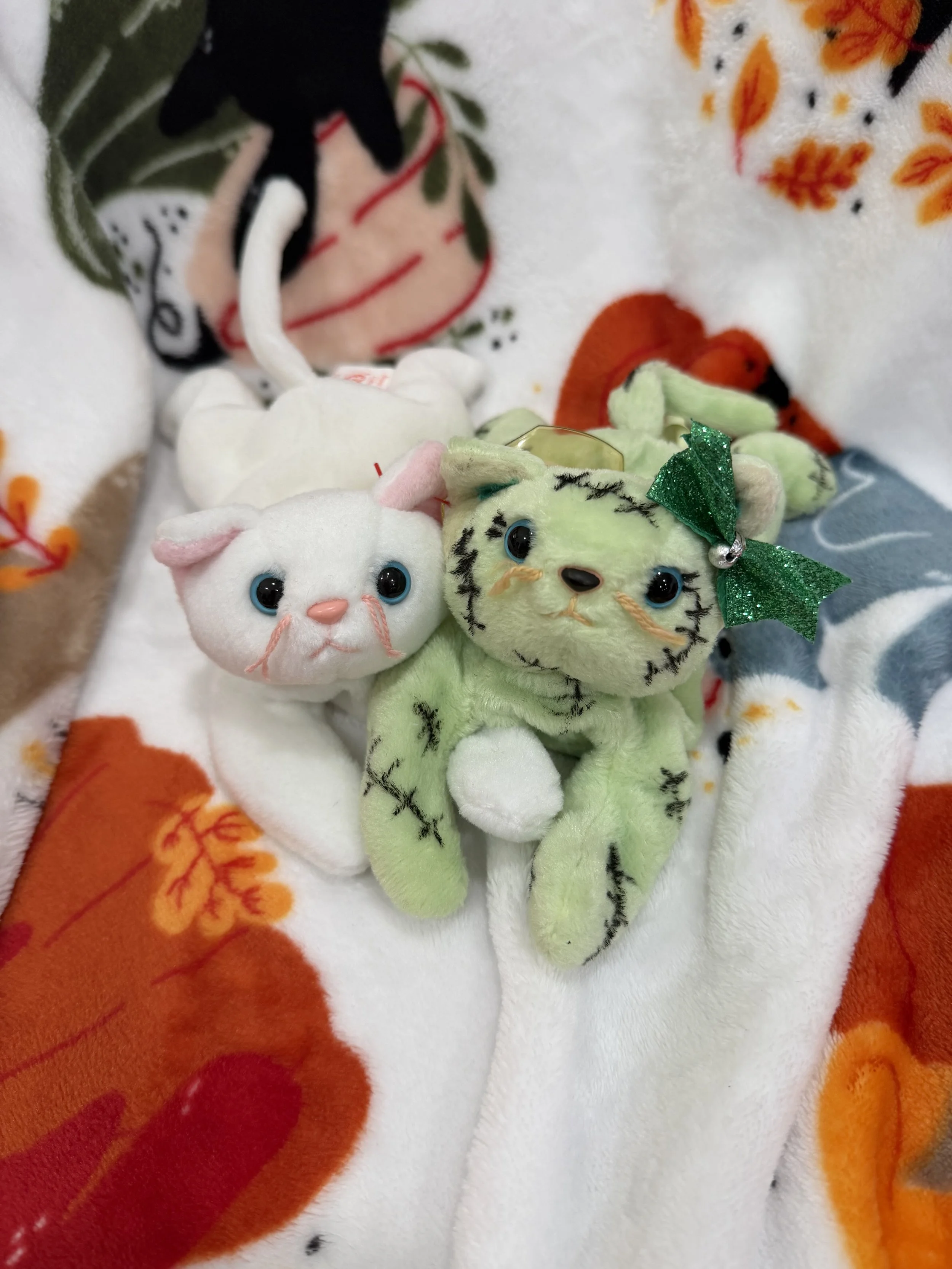Today I got the cutest custom Frankenstein kitty from Cocobear Customs! She is precious and made from a classic TY beanie baby, that I still have. Cocobear Customs makes custom creations from vintage and newer plush toys as well as made DIY kits so you can create your own custom plushies. Use my code RACHEL20 for 20% off. Click here to get yours.